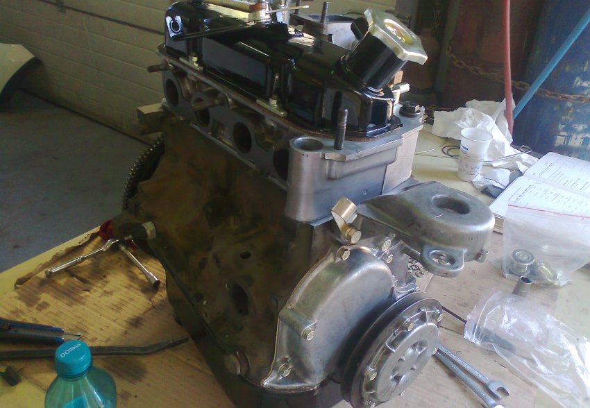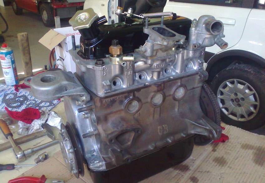 Pe parte mecanica am dorit de asemenea sa fie verificat si reparat la nou absolut totul. A fost refacut motorul integral prin alezare si inlocuirea setului de pistoane, segmenti si bolturi, la cota de reparatie. Toate canalale blocului au fost atent curatate si eliminate eventualele depuneri. Totodata a fost inlocuita distributia, adica lantul dublu si ambele pinioane. Am masurat arborele cotit si am inlocuit toti cuzinetii. A fost schimbat setul complet de garnituri si semeringuri. Am pus pompa de apa noua, de asemenea pompa de benzina si am revizuit complet carburatorul dublu corp cu un set de reparatie. Chiar si toba de evacuare a fost inlocuita cu una noua tot sport, 4 in 1, si astfel am putut sa ma bucur de sunetul special de odinioara a motorului sport.